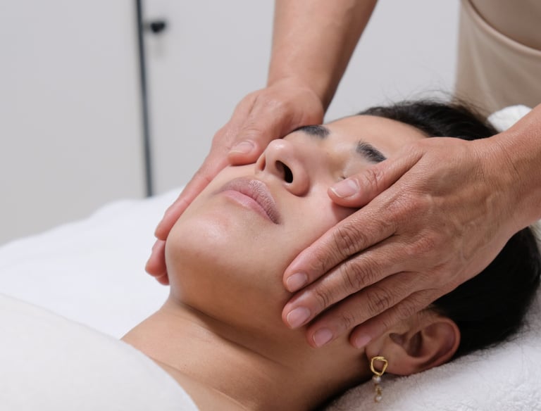 Stimulation des pieds, mains et zone crânienne pour rééquilibrer le corps et favoriser détente profonde.
