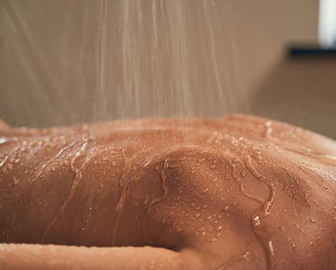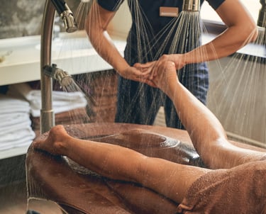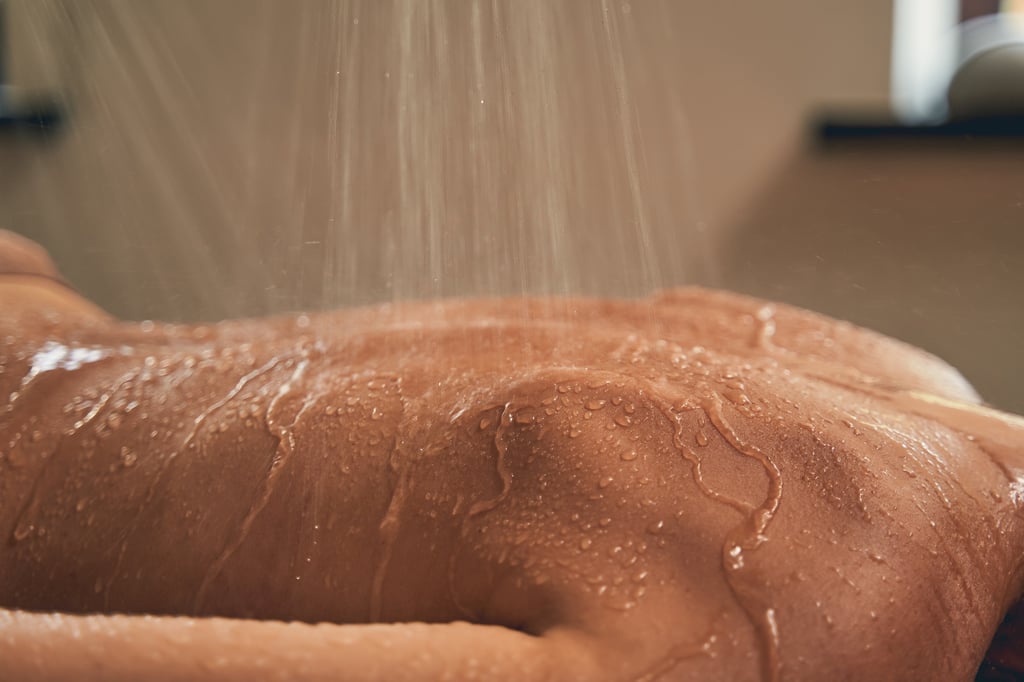 Une approche délicate où l’eau accompagne le massage pour une expérience sensorielle harmonieuse et élégante.